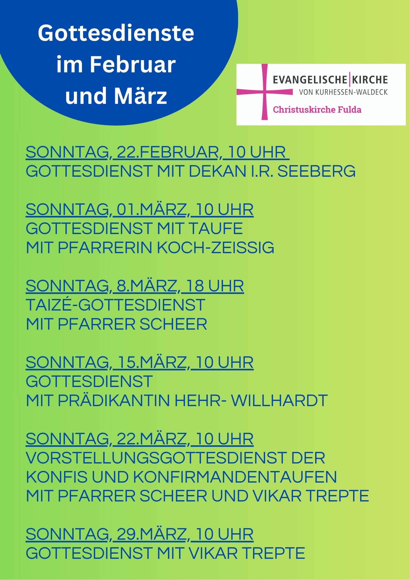 Gottesdienst am 22.März