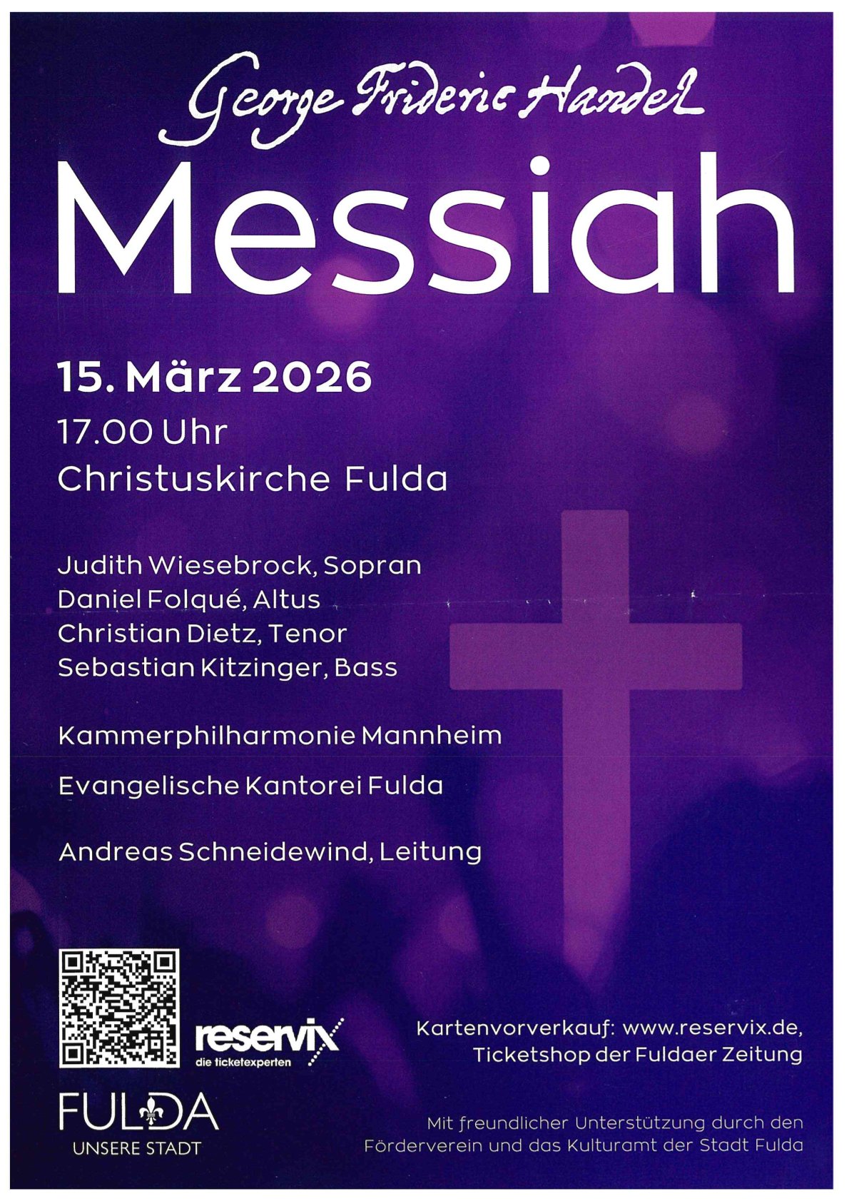 Konzert "Messiah" von Georg Friedrich Händel mit der Kantorei Fulda, Andreas Schneidewind, Kammerphilharmonie Mannheim und Gästen
